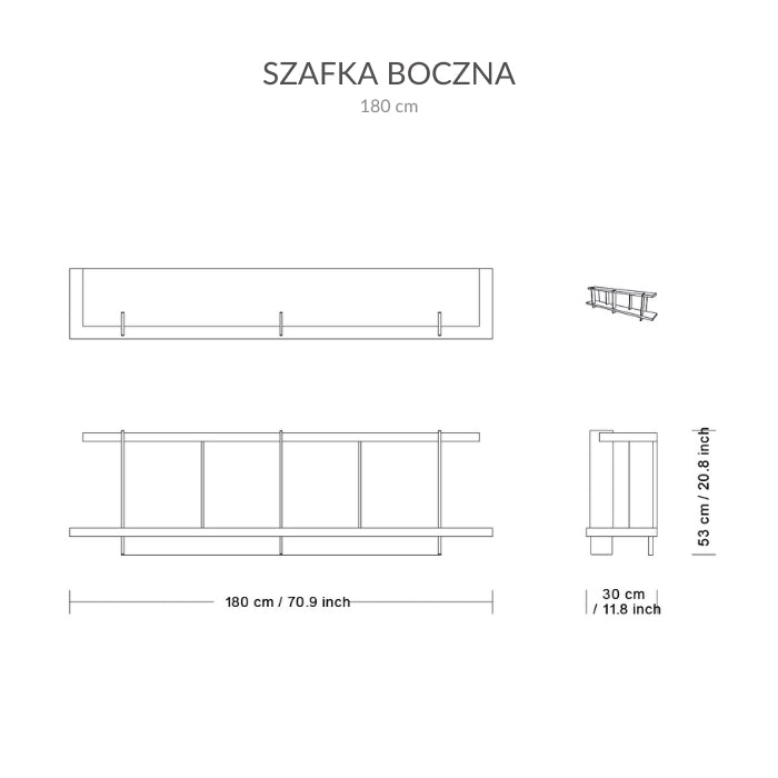 Szafka boczna Eva łączy solidne drewno z wykończeniami metalowymi, oferując eleganckie i praktyczne rozwiązanie do wąskich przestrzeni. Dzięki swojej formie może pełnić funkcję subtelnego separatora w salonie, gabinecie czy przestrzeni biurowej, jednocześnie stanowiąc stylowe miejsce do przechowywania i ekspozycji.